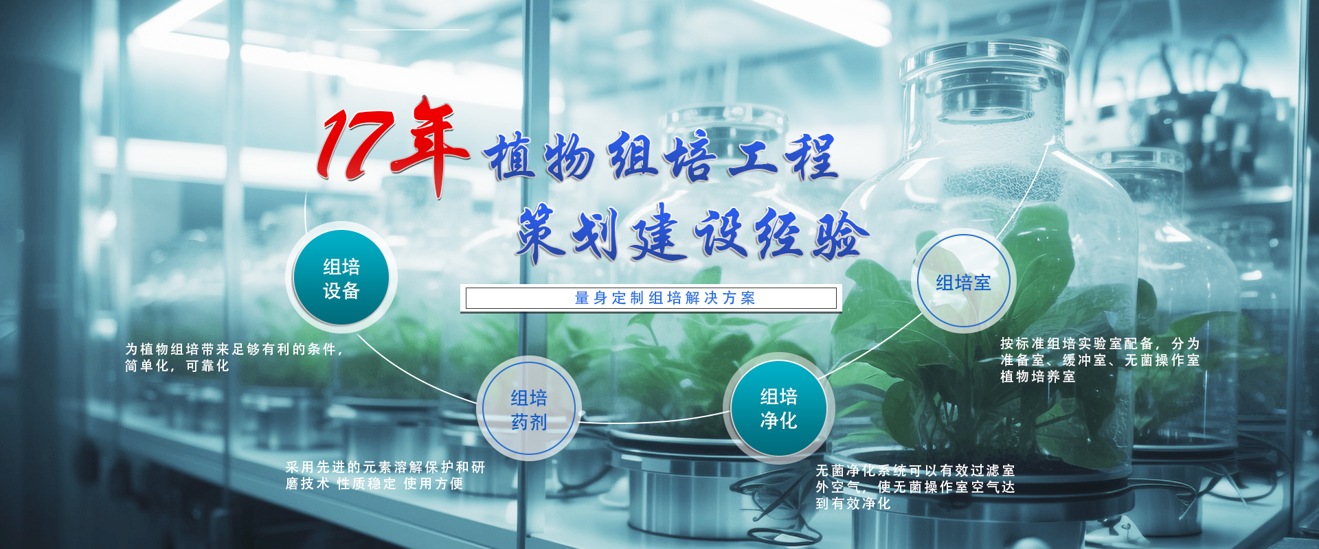 我們一直致力于組培室的科技實用與節能創新的組建融合,無論您 是批量生產、高校科研、教學展示等用各種形式展示您的實力與形象。